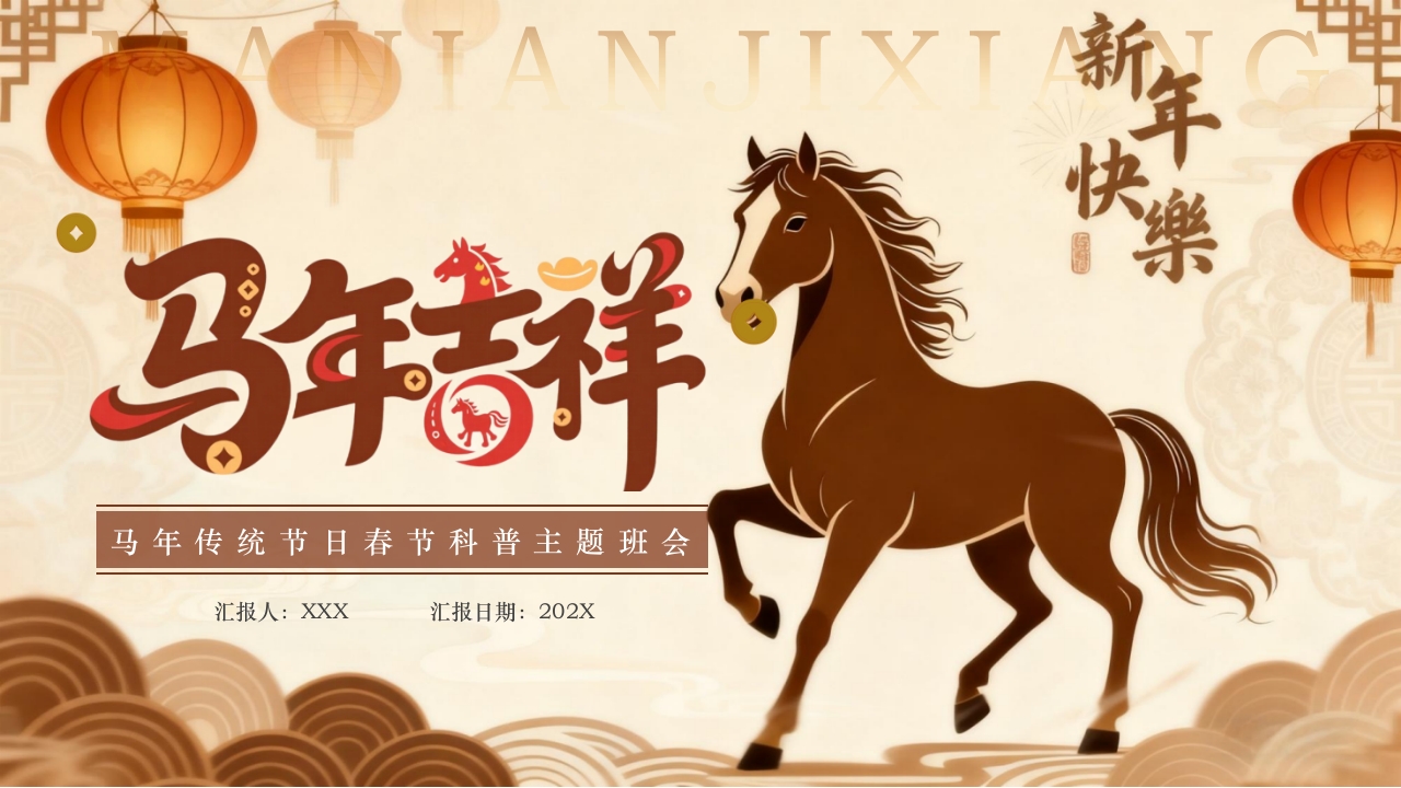 棕色国潮风马年传统节日春节科普主题班会PPT模板