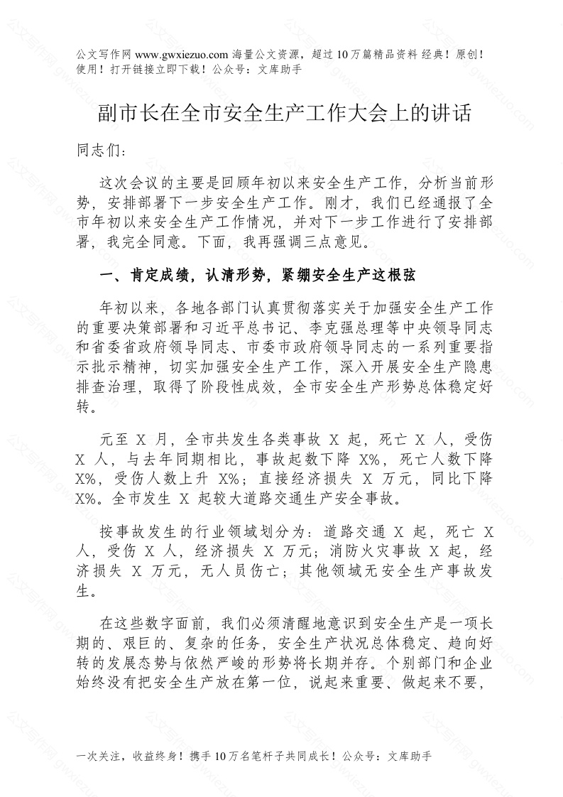 首页精选范文副市长在全市安全生产工作大会上的讲话
